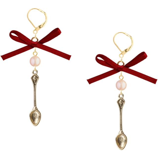 赤いリボンとスプーンのピアス 01(レッド)