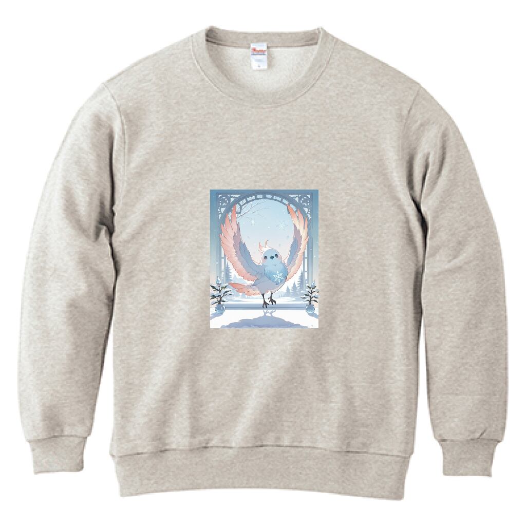 心を温める「冬の精霊02(LSオートミール)」は、ほのかなオートミールの色合いが特徴の美しいデザインが際立つアイテムです。柔らかな冬の光を受けて、精霊たちが静かに舞い踊る姿が描かれ、心に安らぎをもたらします。このトレーナーは、日常のコーディネートに優雅さと特別な魅力を添えてくれることでしょう。