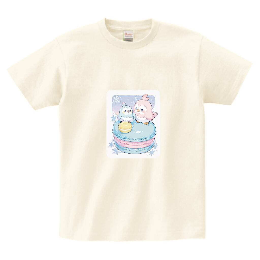 心温まる冬のデザイン、雪鳥とマカロン02(Tアイボリー)が登場しました。雪鳥の素晴らしい姿と、マカロンの可愛らしい色合いが調和し、あなたの冬のファッションに特別なアクセントを加えます。アイボリーの柔らかな色合いは、温かみを感じさせ、どんなシーンにも馴染むアイテムです。