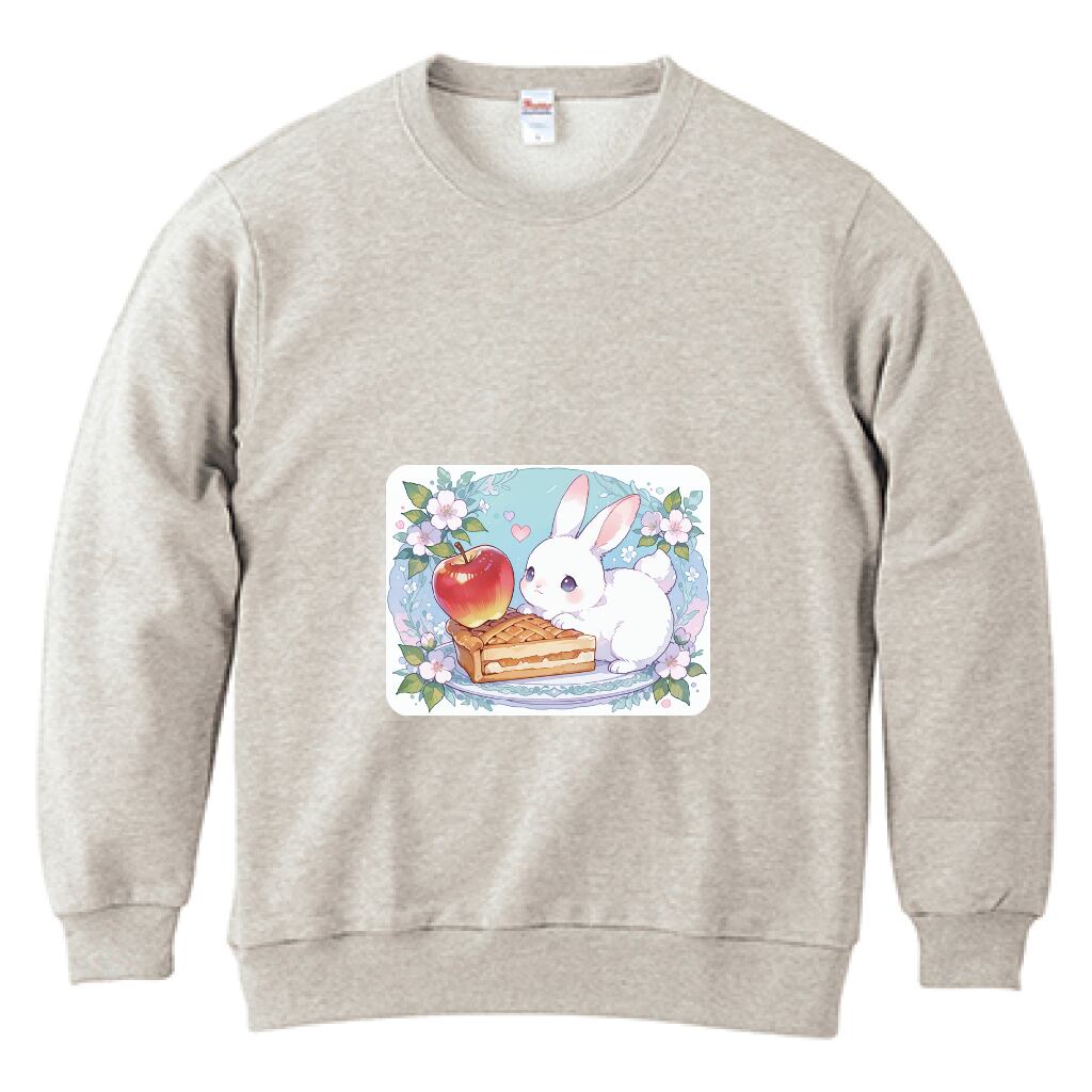 ウサギとアップルパイをテーマにしたトレーナーが新たに登場です! 落ち着いたオートミールカラーが特徴で、柔らかな素材感が心地よさを提供します。日常使いはもちろん、特別な日のコーディネートにもマッチするデザインです。