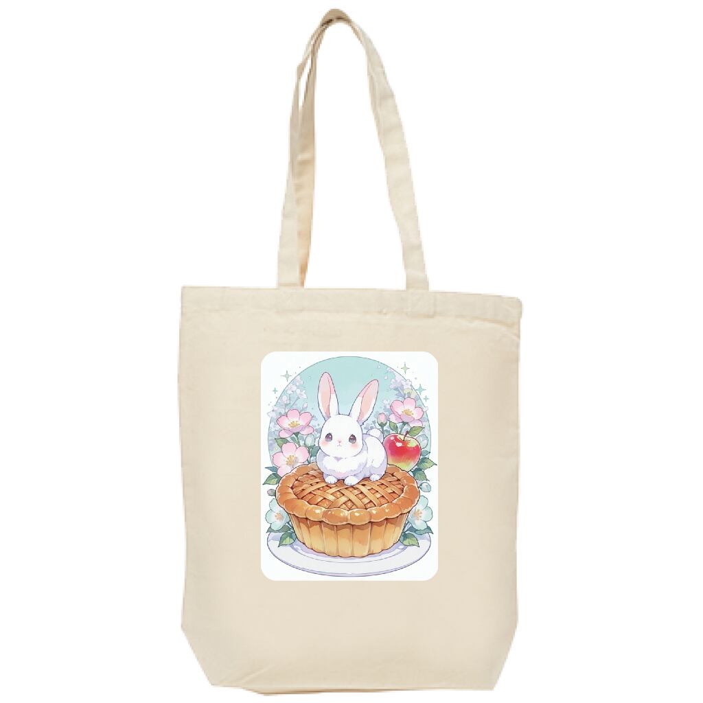 ウサギとアップルパイをテーマにしたオリジナルトートバッグが登場しました! 柔らかなナチュラルカラーはどんなシーンにも調和し、日常のさりげないおしゃれを楽しむのにぴったりです。しっかりとした作りで、荷物をしっかり支えてくれるため、毎日の通勤やお出かけに活躍します。遊び心満載のデザインが、持つ人の個性を引き立てる一品です。