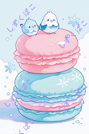 冬の小鳥とマカロン_ノーマルP01(RNシルバー)|やさしいスイートアニマル