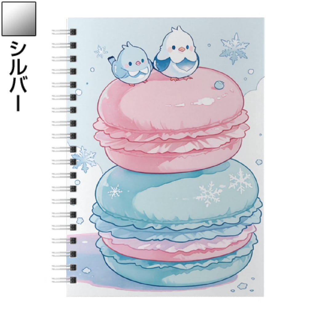 冬の小鳥とマカロンが描かれたリングノート、心温まるやさしいスイートアニマルの世界へようこそ。