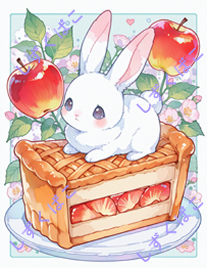 ウサギと甘いアップルパイが心温まるシーンを描いた、愛らしいUVコーティングシールです。